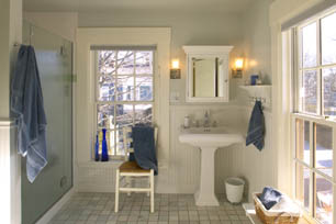This master bathroom was originally a small office off of the hall with a doorway where the toilet now sits.