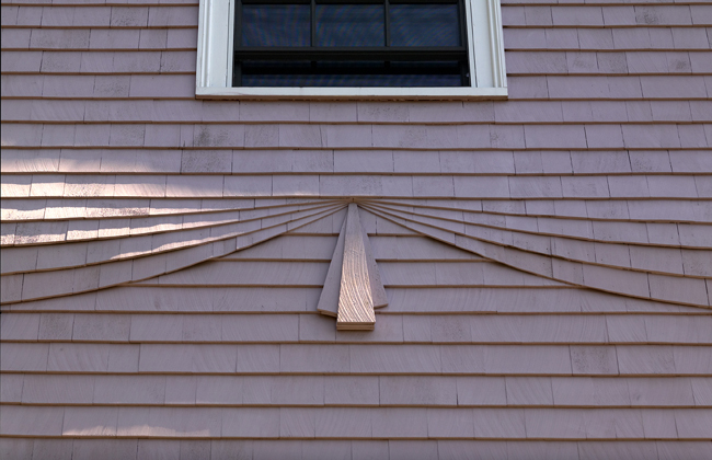 We knew we had a gem of a client when she gave us the mandate to “add whimsy.” We did just that. The swags were laid-out in the shop, lauan templates were made, shingles were cut, numbered and then taken to the site and nailed-up…no sweat. We hate mucking up a front porch with downspouts, so we buried them inside the columns. And we cut the bowed balusters ourselves.
