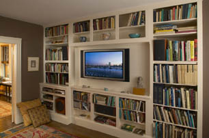 While we uncover and restore buried fireplaces for some clients, for others we cover them up and build bookcases...