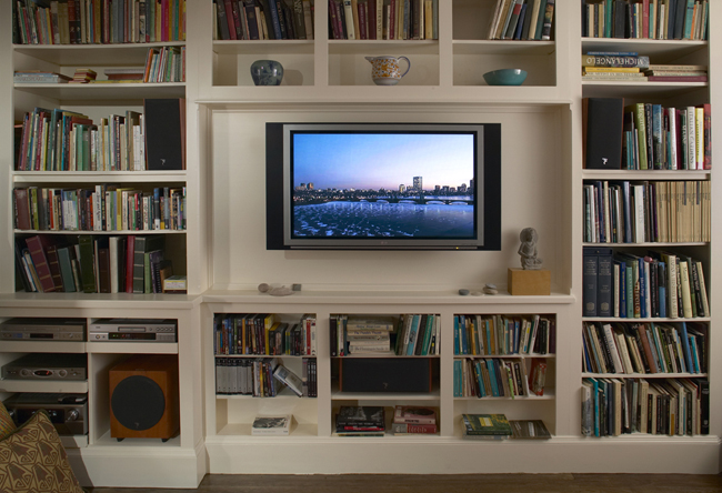 While we uncover and restore buried fireplaces for some clients, for others we cover them up and build bookcases...
