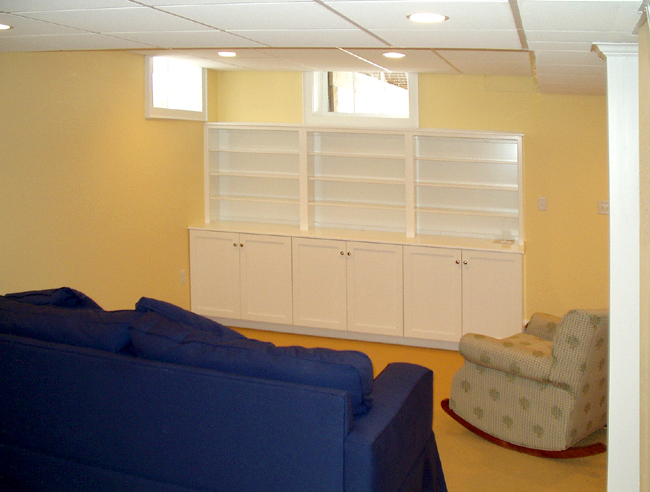 This project has been our most dramatic basement transformation, satisfying the common needs of a growing family: more play space and storage.